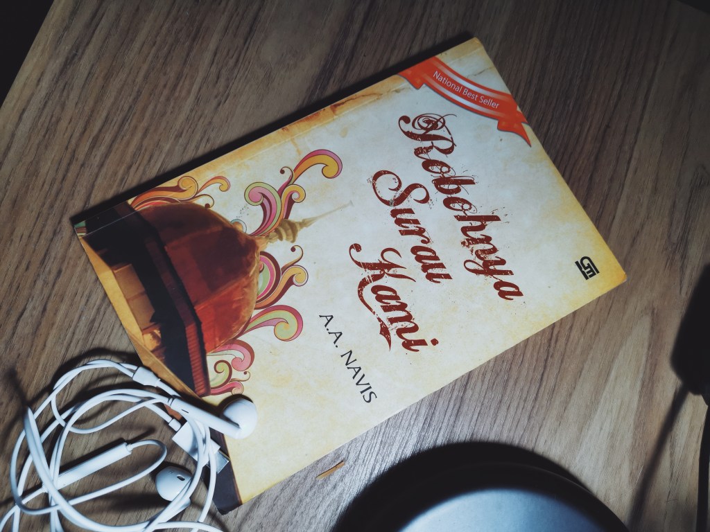 Baiklah. Lanjut soal Hari Buku Nasional. Setelah membongkar rak bukuku, aku menyadari bahwa buku fiksi berbahasa Indonesia yang terakhir aku beli, selain buku-buku kumpulan cerpen Kompas, adalah “Robohnya Surau Kami” oleh A. A. Navis. Dari sini saja sudah kelihatan jelas bahwa aku adalah penggemar antologi cerita pendek, terutama dari Kompas, haha. Kalau tidak salah, Robohnya Surau Kami ini aku beli di tahun 2011. Aku membeli buku ini karena begitu melihatnya terpampang di rak buku Gramedia, aku merasa gelombang nostalgia. Begitu melihatnya terpajang di rak buku-buku fiksiku yang kini diselimuti debu, perasaan tersebut bangkit kembali. Habislah hariku yang harusnya digunakan untuk menyicil tumpukan paper UAS untuk membaca kembali kumpulan cerpen ini.